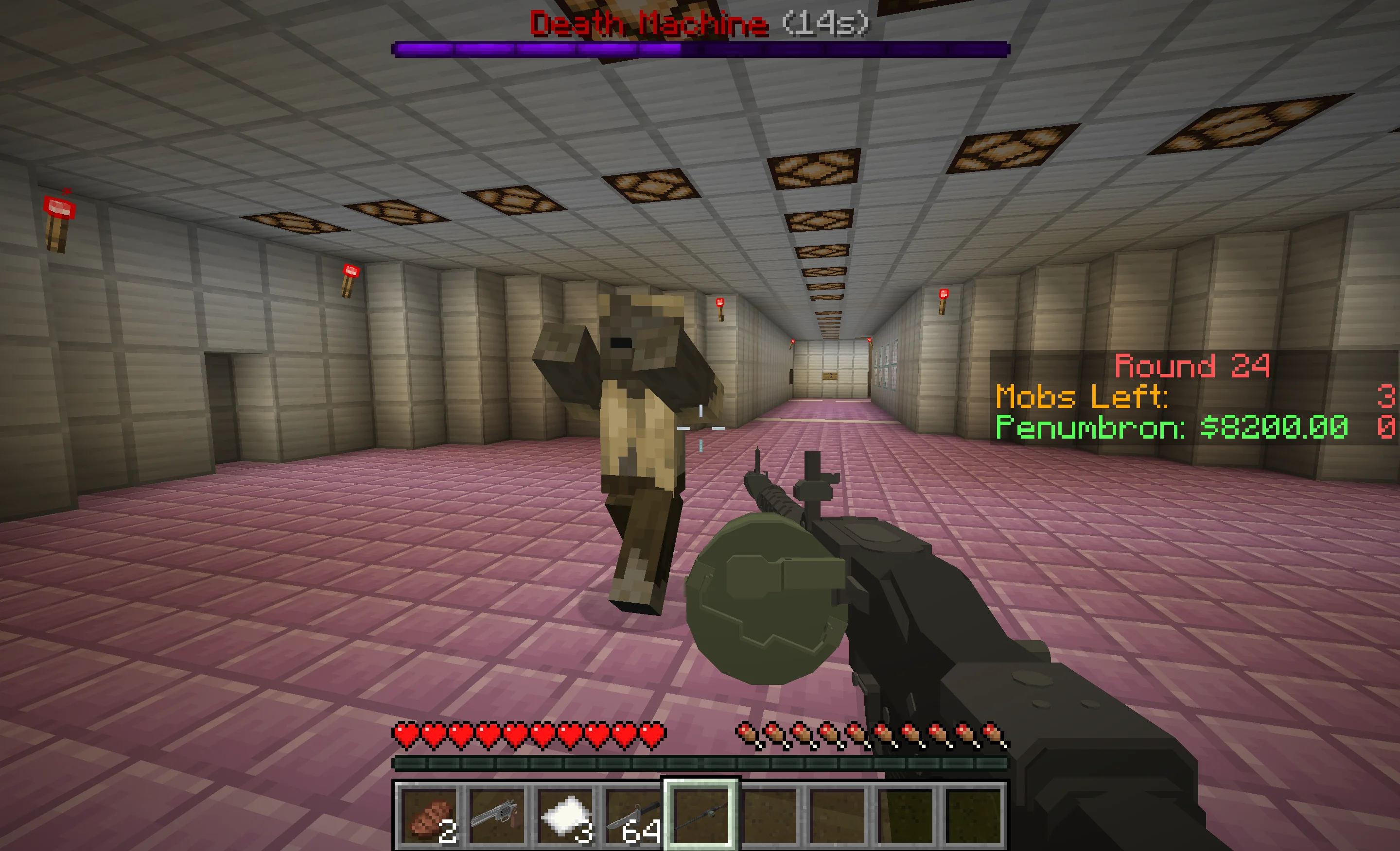 - Death Machine: Gives you a weapon you can use for 30 seconds. (Requires a weapon setup in WeaponMechanics called DeathMachine.)