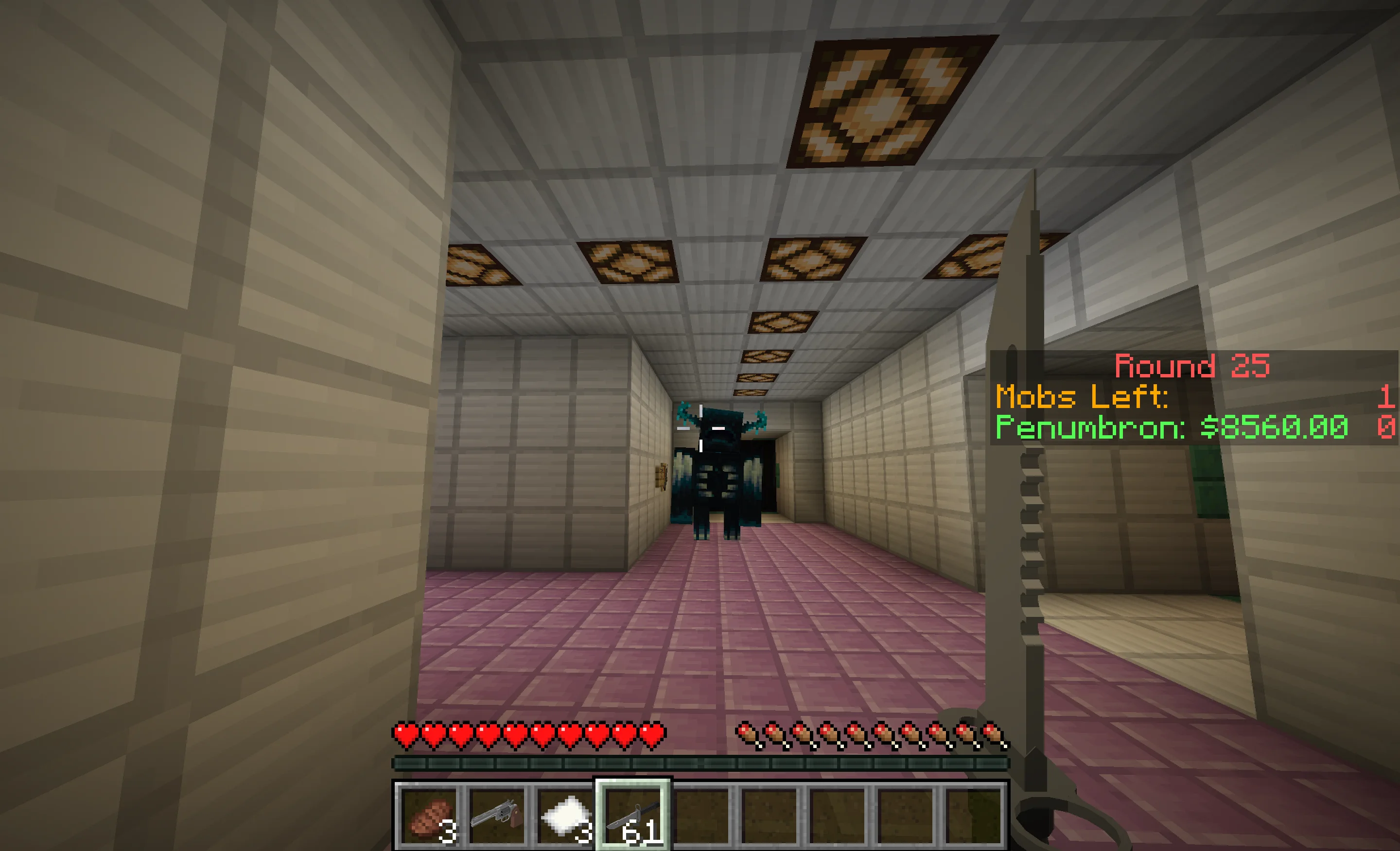 Every 25 rounds, a Warden spawns somewhere in your map. If you're playing with more than 1 player, the quantity of wardens increase, depending on player count. Last kill awards a Double Points.Every 15 rounds, 5 'Elite Piglin Guards' spawn, encased in Netherite Armour and holding a Netherite Axe. Last kill awards a Death Machine.